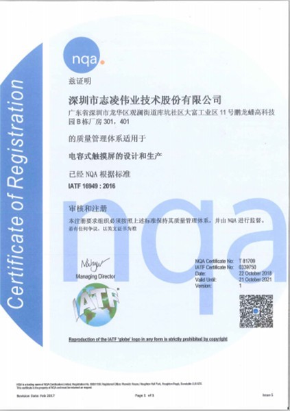 ? ? ? ?歷經(jīng)一段時間的沉淀與改進,近日,國內(nèi)電容觸控解決方案服務(wù)商——志凌偉業(yè)已通過IATF 16949